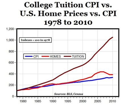 The average declared costs towards tuition, fees and accommodation for the year 2010-11 jumped 6.1% from the previous year.